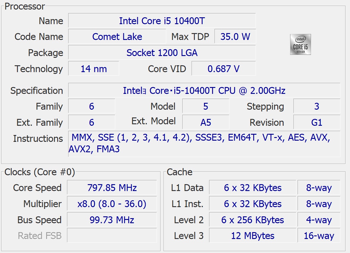 Core i5 10400T (2.00GHz)1039 146.58 11.39 2475
